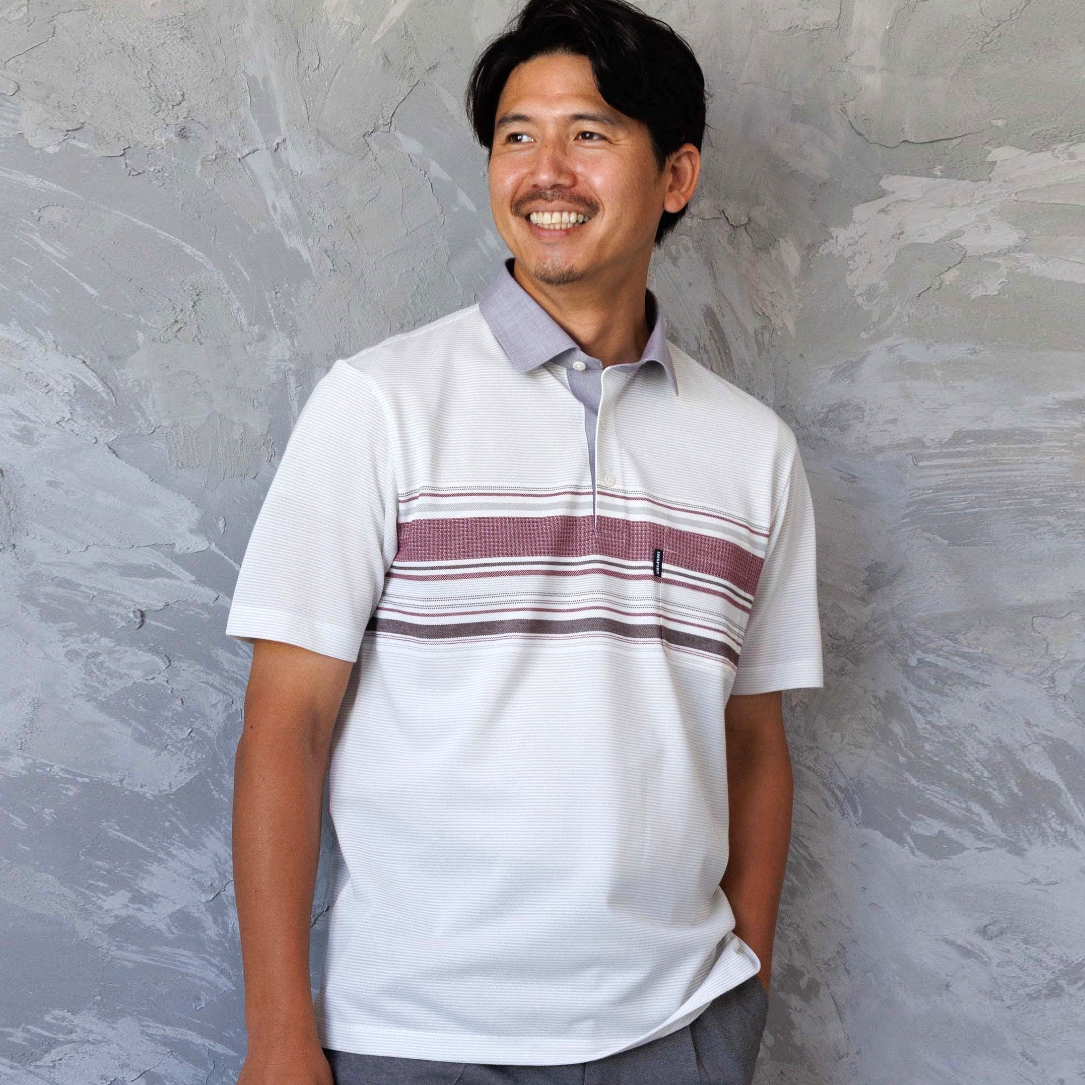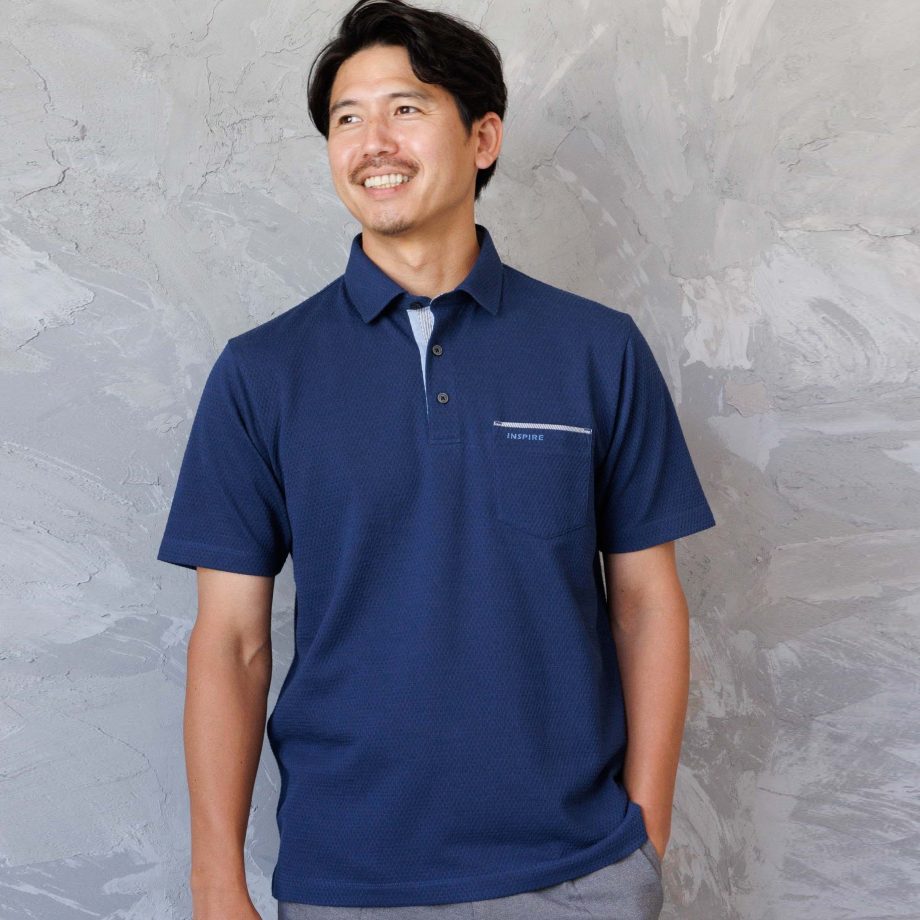 INSPIREのポロシャツは、吸水速乾のプレミアム素材を使用し、肌触りがなめらか。