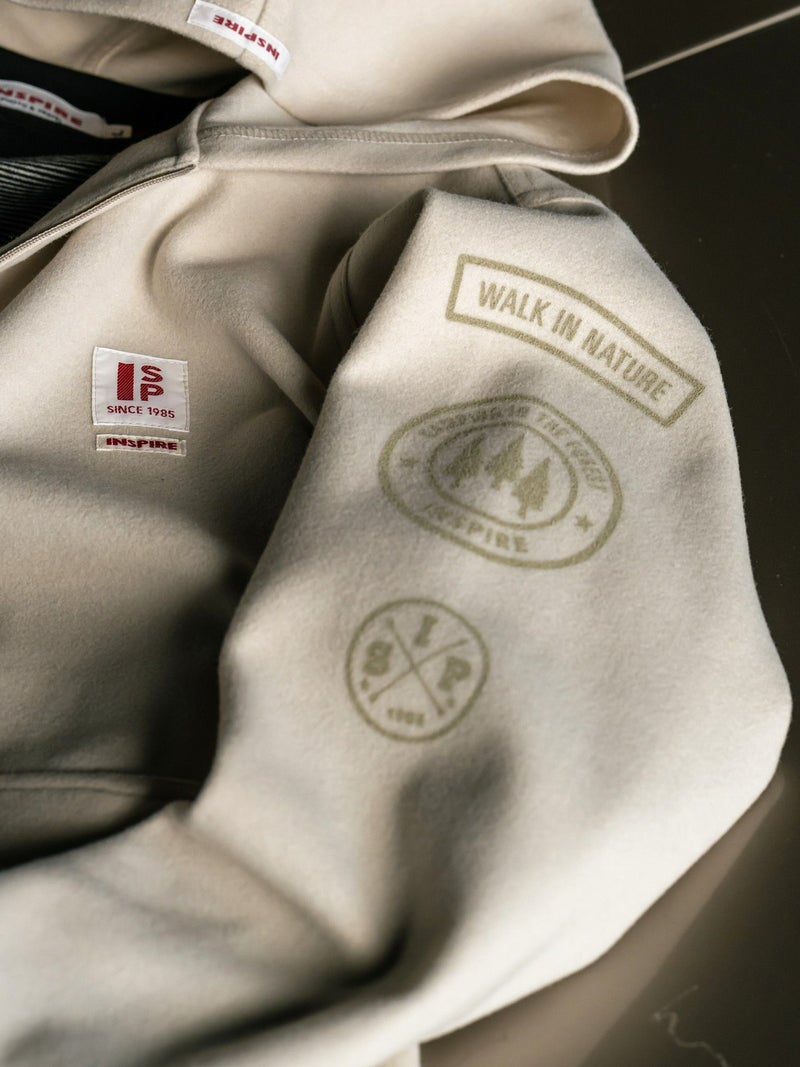 フード下にもさりげない施しを入れて “日常に溶け込む機能美” を追求した、INSPIREのブランド誕生40周年を記念した新しいメルトンジャージパーカーです。