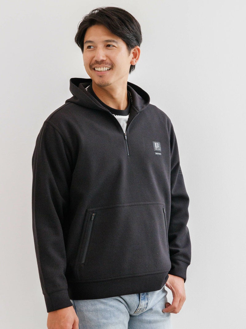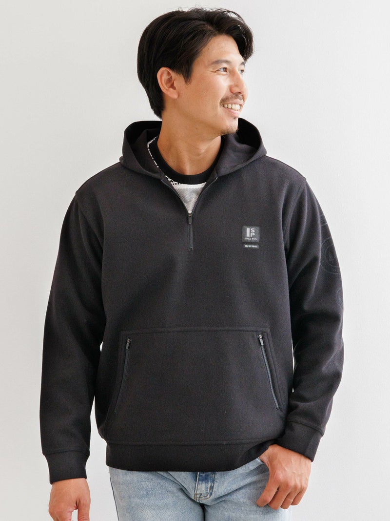 フロントのハーフジップは、ファスナーを少し長めに設計。